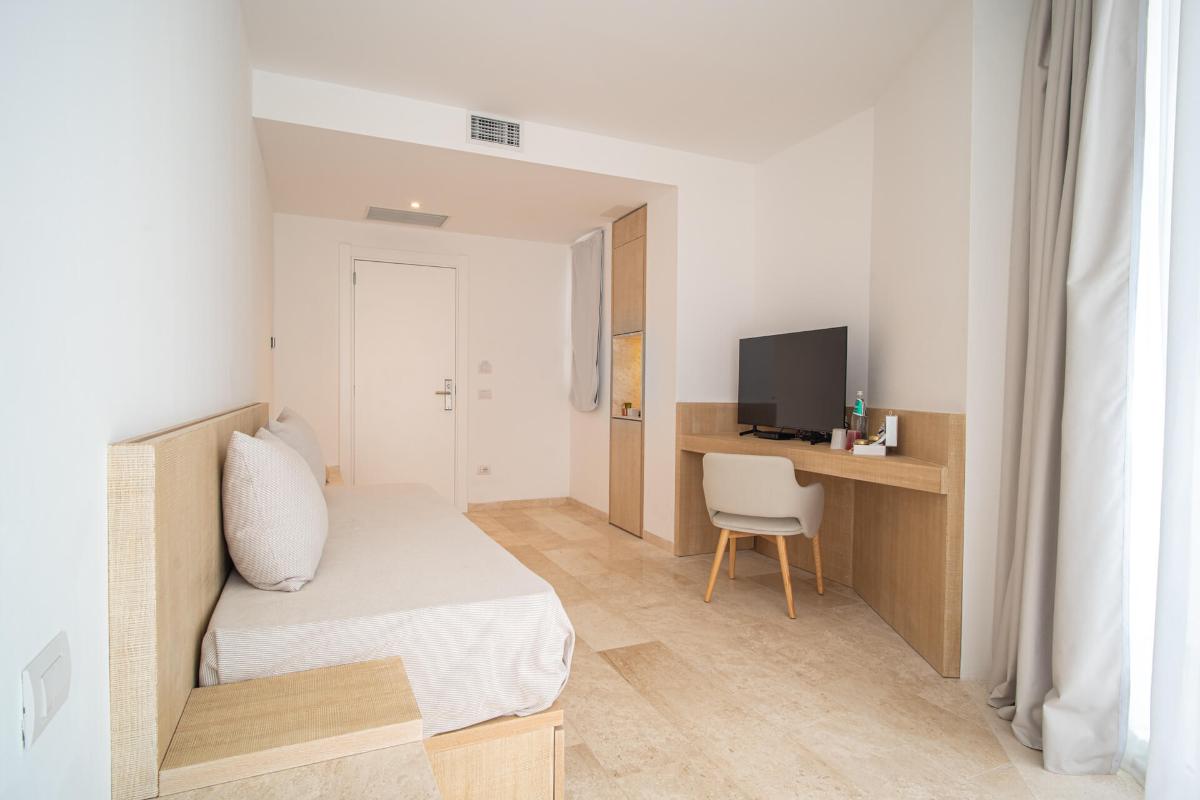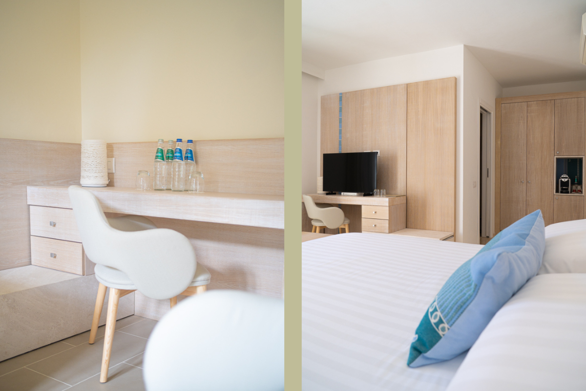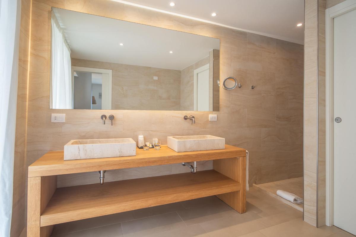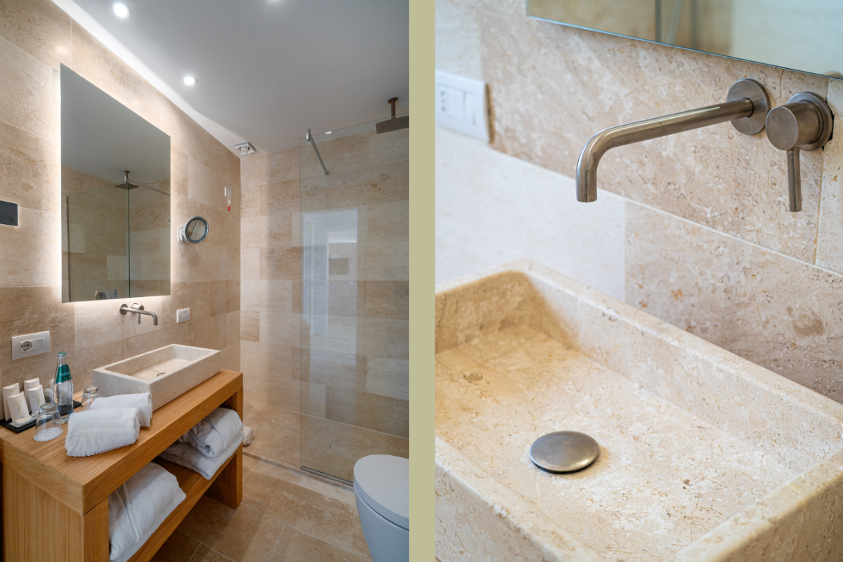 Die Design-Zimmer sind mit jedem Komfort ausgestattet. Sie liegen zum Garten oder zum Innenhof. Einige der Design-Zimmer sind miteinander verbunden und eignen sich ideal für den Aufenthalt größerer Familien.Die Einrichtung ist eine Kombination aus modernen und traditionellen Elementen, einige Zimmer sind frei von baulichen Barrieren und für Gäste mit Behinderung oder besonderen motorischen Bedürfnissen geeignet. Sie sind ideal für Paare und bieten auch Platz für ein Babybett.