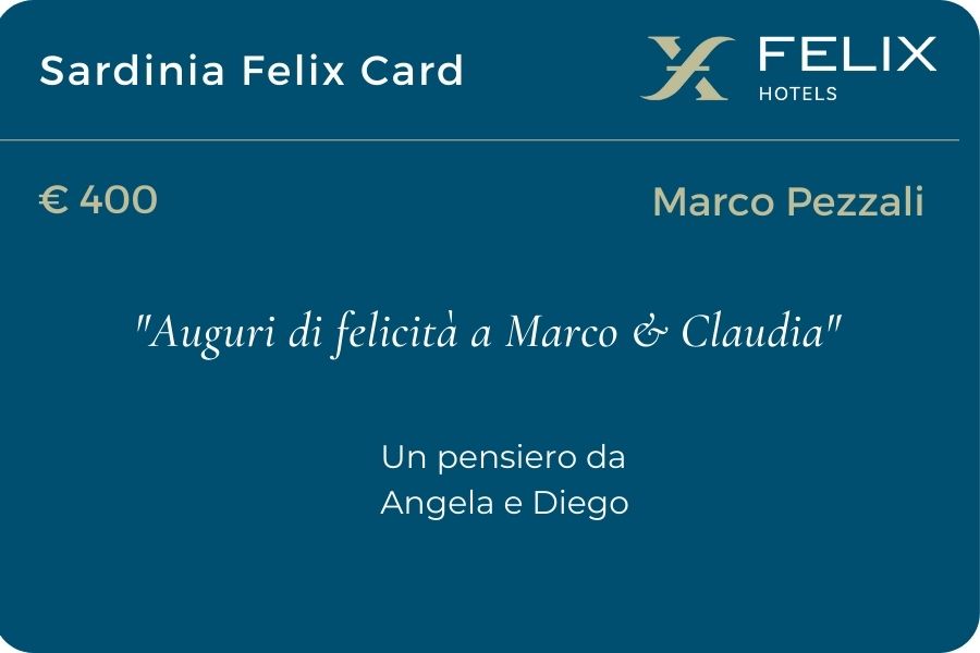Felix Olbia Card non è solo un dono, ma un invito a vivere momenti di qualità nell’elegante atmosfera dell’Hotel Felix Olbia. Con questa card si può regalare un aperitivo, una cena, uno o più ingressi alla piscina e alla sala fitness dell’hotel oppure un prodotto della pasticceria, come una torta, un vassoio di monoporzioni o un dolce natalizio.