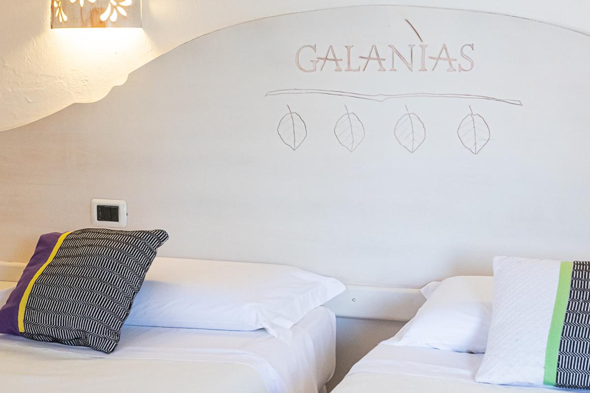 Le camere Galanias sono situate nel giardino, fra il verde della profumata macchia mediterranea e sono ideali per chi ama ritagliarsi uno spazio riservato godendo di un ambiente tranquillo. Sono dislocate su due schiere a circa 30/150 metri dall'edificio principale, con un comodo parcheggio privato all'aperto nelle aree circostanti.
